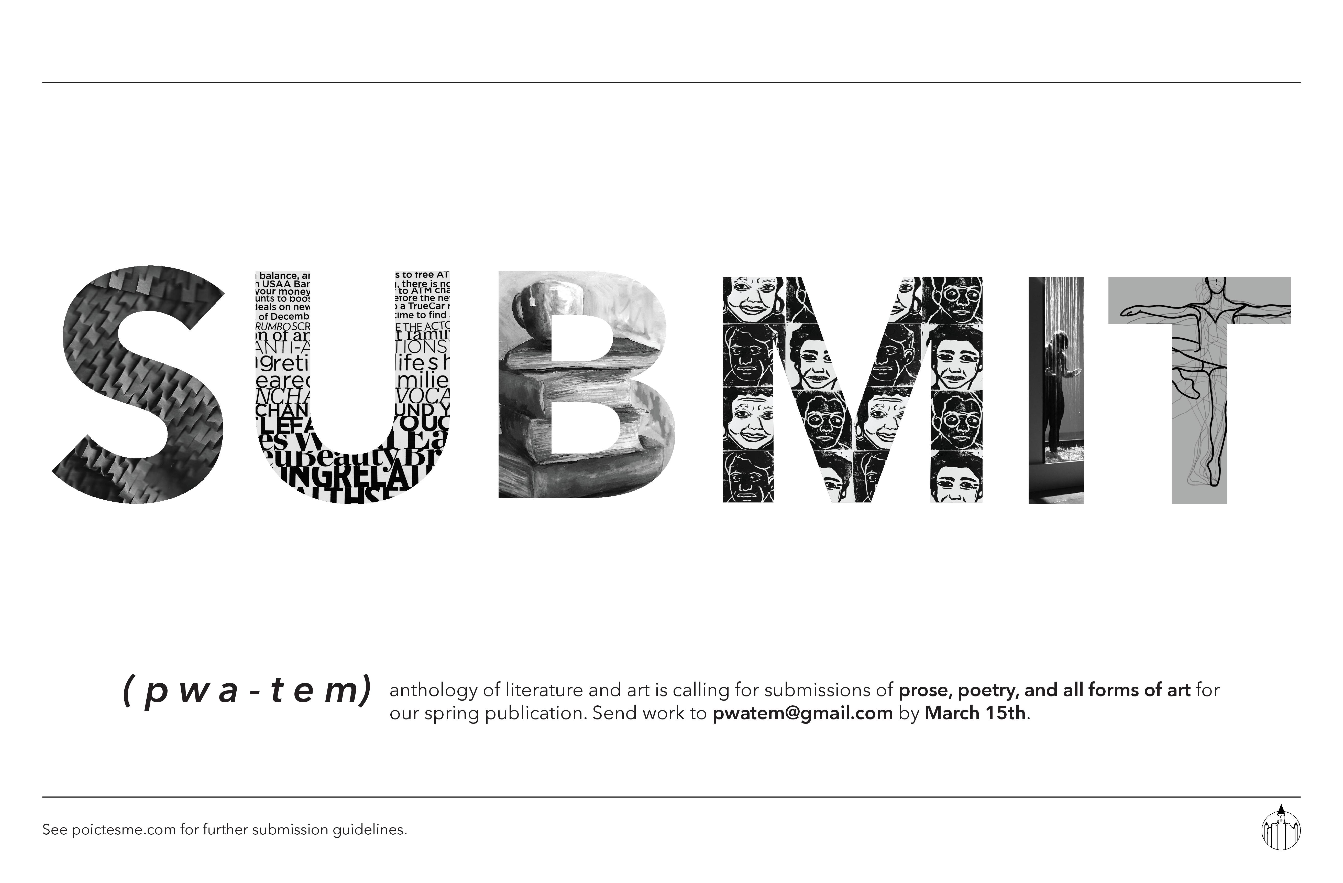 We are calling for submissions for our spring publication. Send your writing and art to pwatem@gmail.com by March 15th!